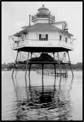 Our country has several coastlines used by ships from around the world. In the East it borders the Atlantic Ocean, in the West the Pacific Ocean, and in the South the Gulf of Mexico. But we also have another very important area of coastline where the land meets the sea, the Great Lakes. So, all of these four areas bordering our country need and have lighthouses, as well as some of our more important navigable inland waterways. For example, the Hudson River, Lake Champlain, Chesapeake Bay and San Francisco Bay are also dotted with lighthouses.
