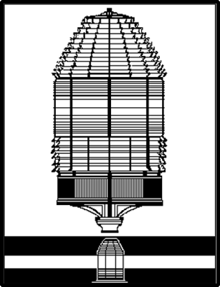 The Fresnel lens can be compared to a huge lampshade except that it is made of 100’s of pieces of beautiful, specially cut glass. It surrounds the lamp bulb, but differs from a lampshade, which concentrates the light downward. This lens, due to its special design, and because it is made of glass, intensifies (brightens) the glow from the light. It takes the rays of light which normally scatter in all directions and bends (refracts and reflects) them, focusing them into a single beam of light, which shines out in a specific direction.